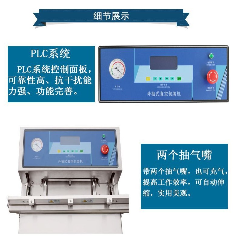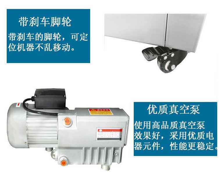 電源 220/50HZ 電機功率 1KW 熱封功率 0.95KW 抽氣速率 20m³/h 充氣速率 0.85mpa