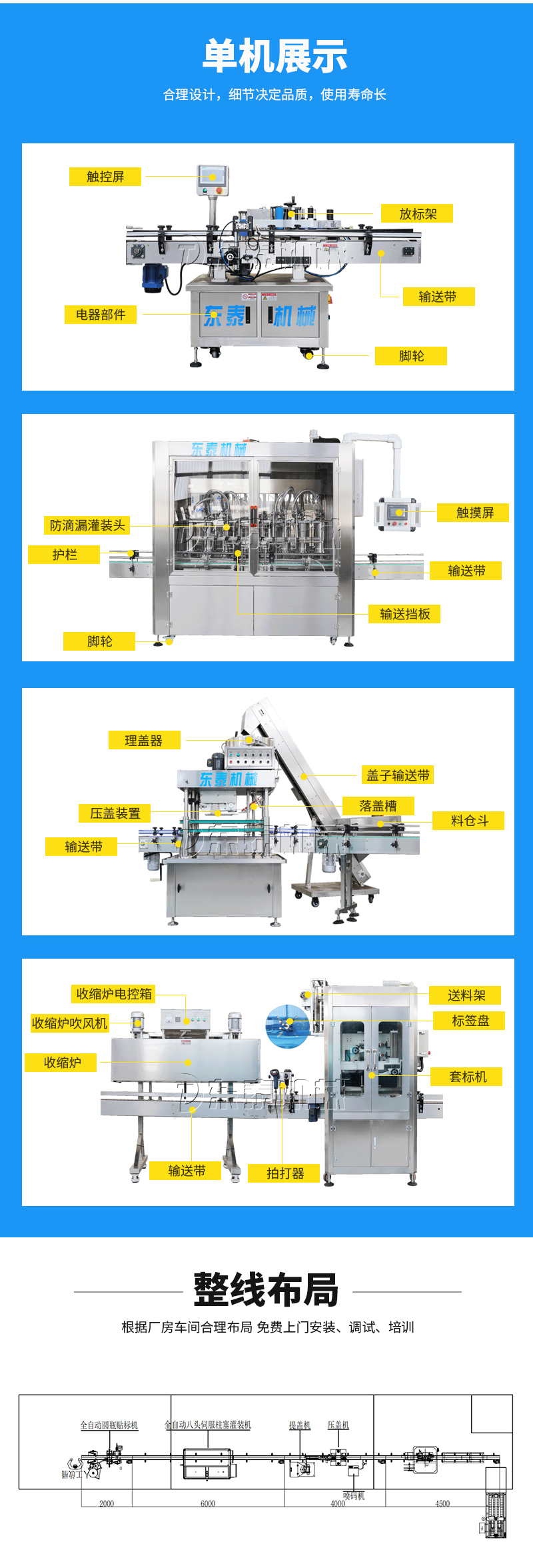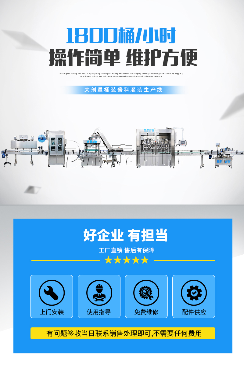 產品簡介: 該系列灌裝機采用活塞式伺服系統驅動原理,適用于粘流體中帶小顆粒并且可流動的較為粘稠的物料灌裝。比如:洗衣液、洗潔精、甜面醬、沙拉醬、芝麻醬、食用油等的灌裝。設備采用伺服系