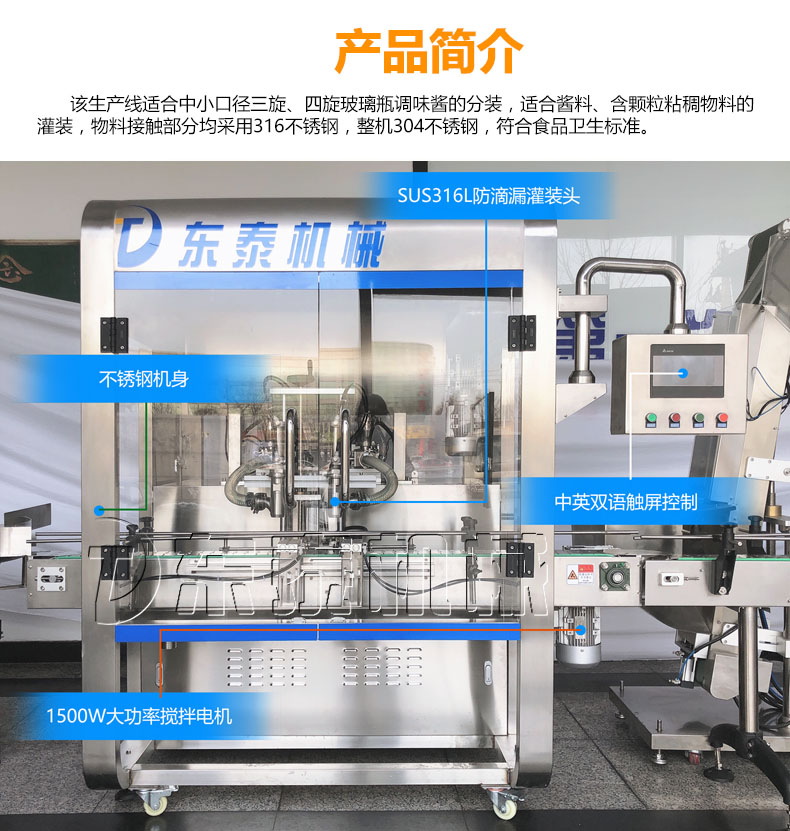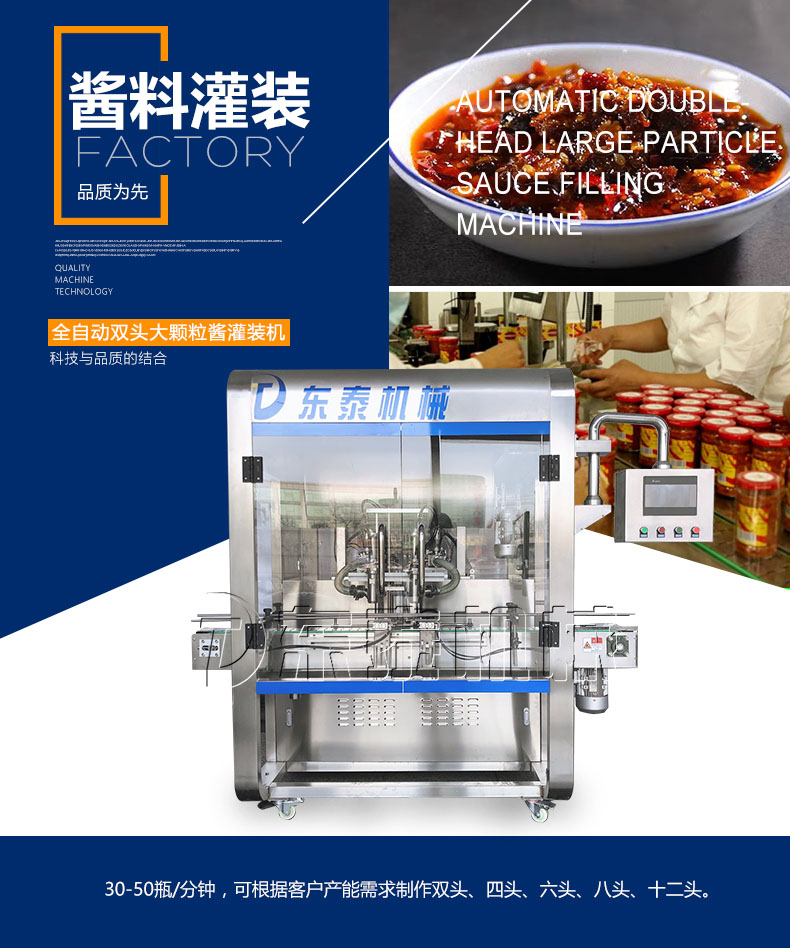 隨著機械技術的快速發展灌裝機的發展也是日新月異,使得其種類比較多。蘸醬在我國擁有悠久的歷史,在我國烹飪中占有著重要的地位,發展到現在在做菜和食品中也不可或缺,巨大的市場使得蘸醬灌裝機擁有巨大的市場,醬類廠家在引進設備時都想采購到高效率、適合自己的蘸醬灌裝機械。人們對食品要求的提高使得醬類生產廠家迎來了較大的變格,安全衛生是非常重要的標準,因此對蘸醬灌裝機的選擇也更加的要求嚴格,許多傳統的機械已經不能滿足企業高標準、高效率的要求。因此選擇一款適合的蘸醬灌裝機械產品顯得尤為重要。
