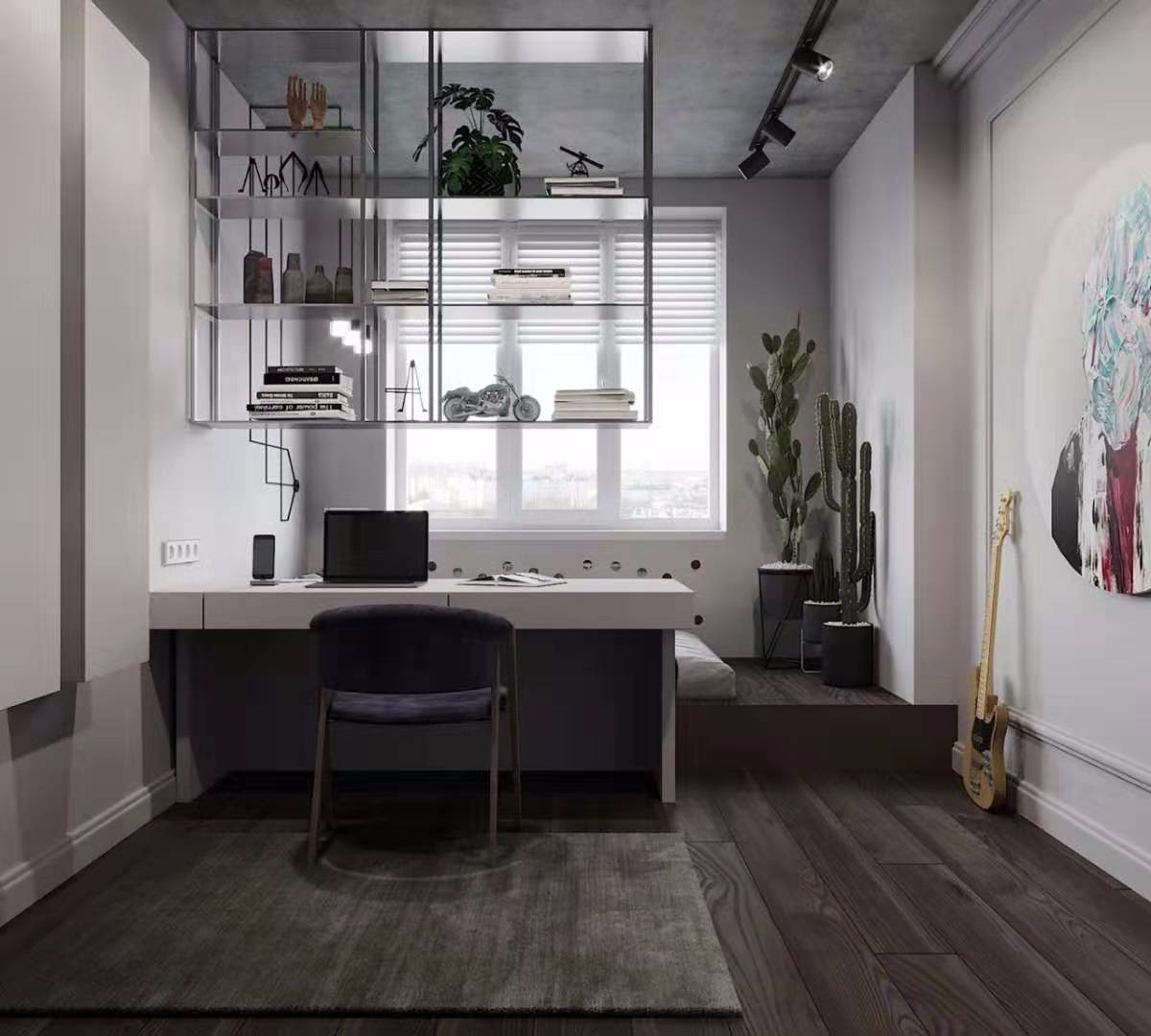 書桌與書架的搭配將整個客廳的設計變得靈活